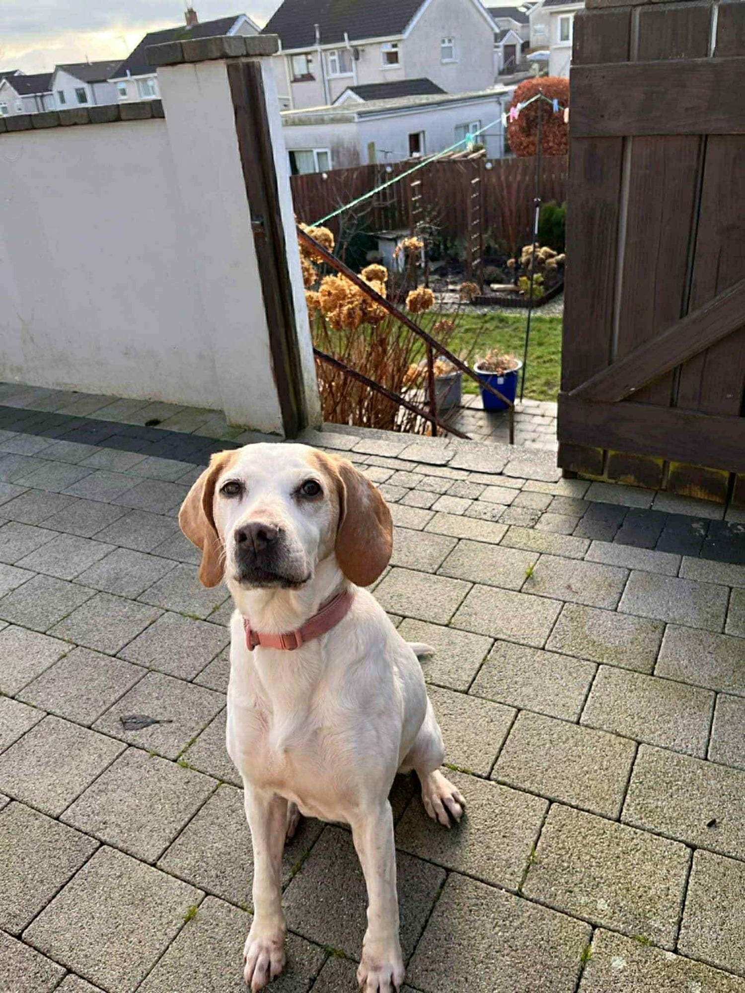Betsy is with another rescue we are trying to help out- she is a typical foxhound so can be vocal but shes a sweet 6 year old girl bursting with energy always ready for an adventure- she loves long walks up mountains sniffing the fresh air she thrives on cuddles and has a pechant for chicken nuggets ! She would be fine in a home with older children and savvy cats. She has been tested around livestock : horses,cattle & sheep and is fine. She would make a fabulous family dog.